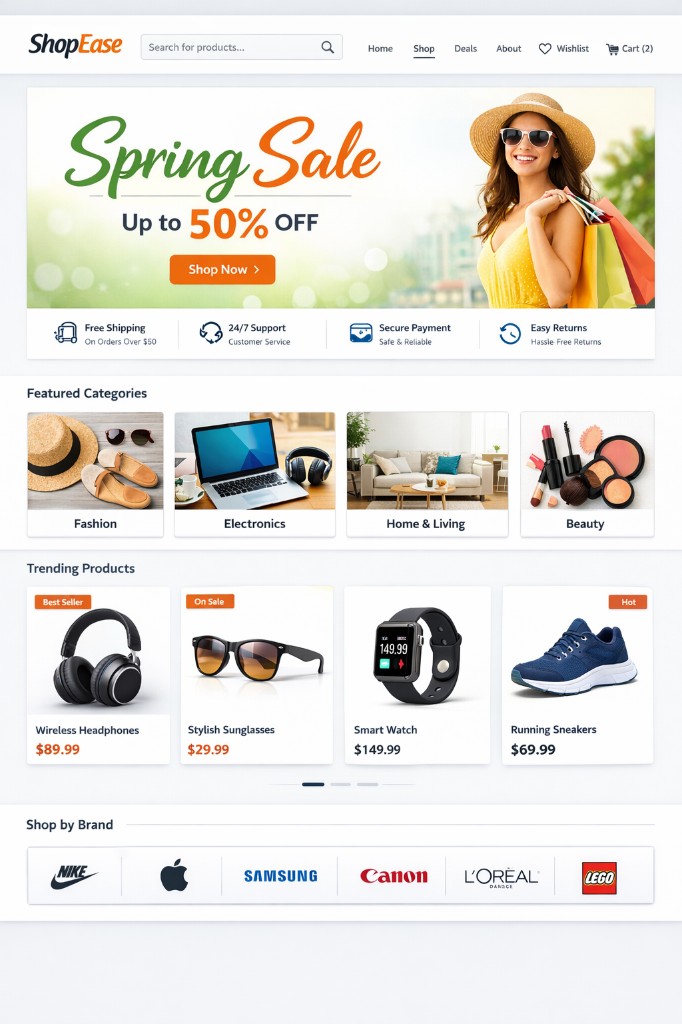 A full-featured online shopping platform with payment integration and inventory management.